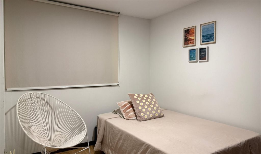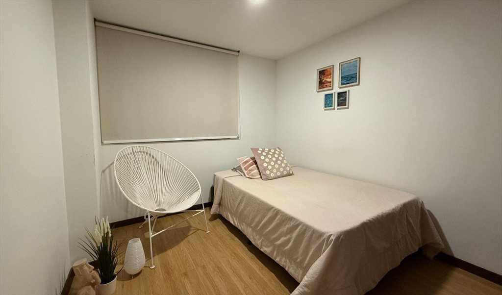 amplio apartamento de 110 metros, la unidad es completa con porteria, piscina, salón social, gimnasio y turco, el apartamento es muy cómodo, tranquilo y moderno, la habitación de alquiler está amoblada y el baño queda justo afuera y solo esa persona tendría acceso a el, el apartamento es muy cental, a 15 min del poblado, cerca a gimnasios y centros comerciales