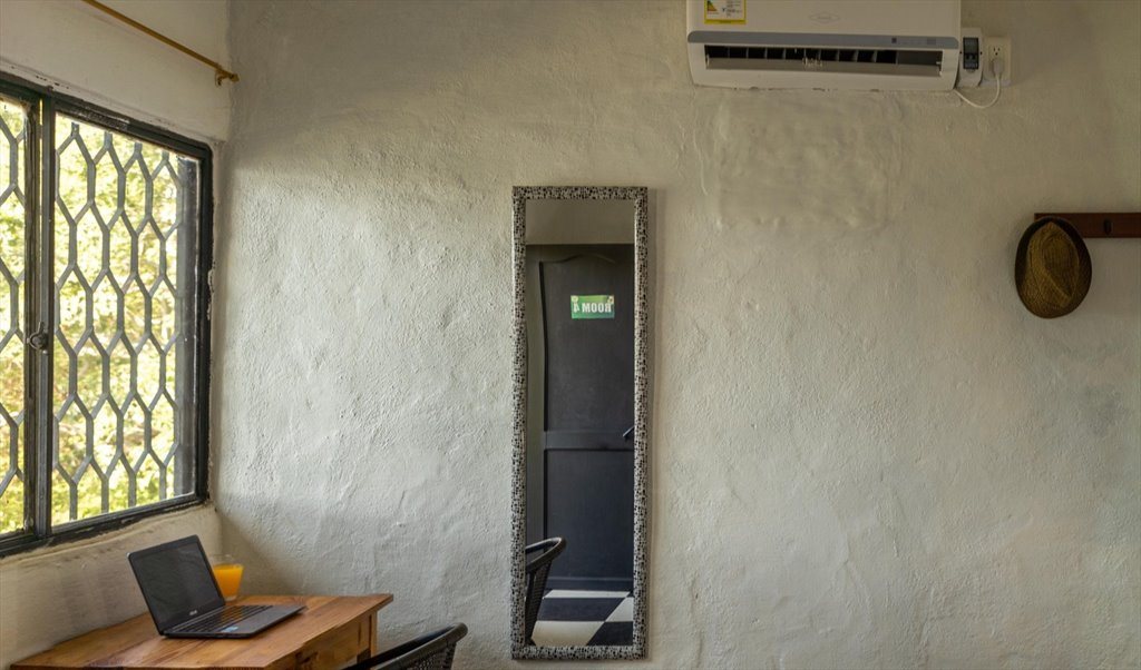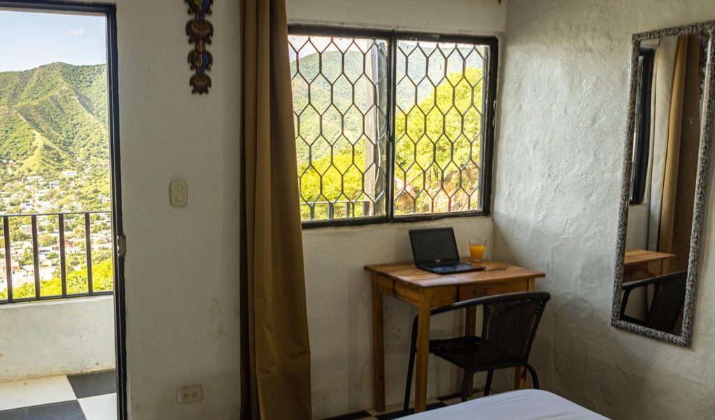 La habitación está en el segundo piso, tiene una cama doble, aire acondicionado, baño privado, ventana con vista al mar y un escritorio con silla para los nómadas digitales! Hay internet wifi de 450 megas disponible en toda la casa. La entrada a la habitación es independiente y hay una zona para trabajar con portátiles en la terraza también. Ideal para parejas o personas que viajan solas. Si buscas un lugar tranquilo para descansar y desconectarte del ruido de la ciudad, es el lugar perfecto para ti!