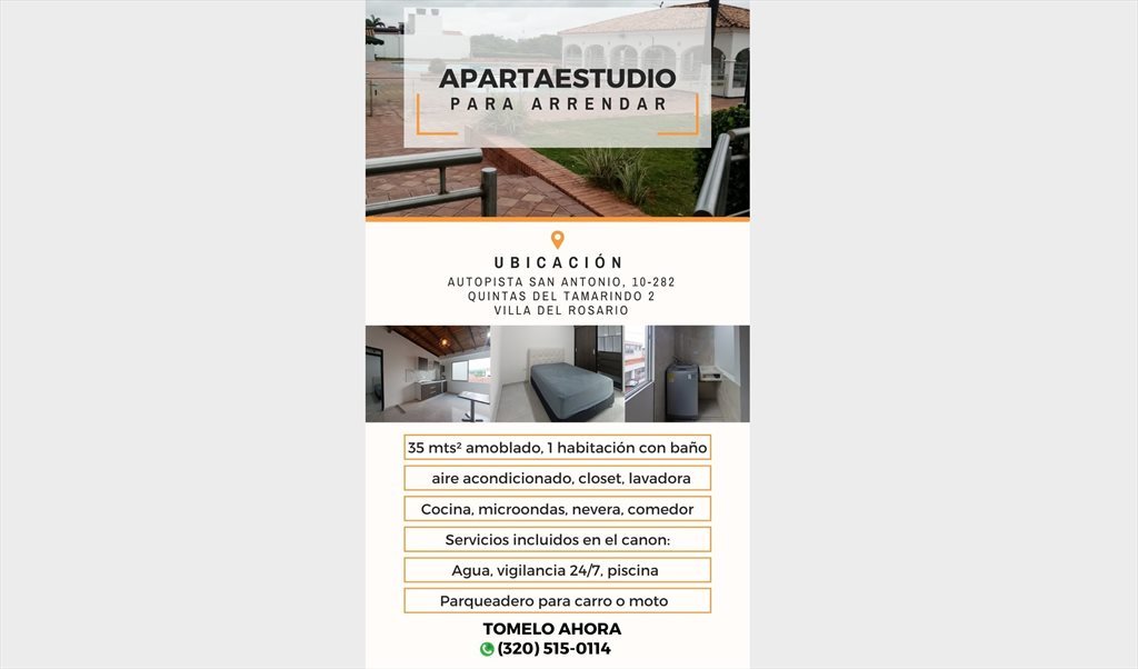 Completamente amoblado está ubicado en el conjunto residencial Quintas del Tamarindo 2, segundo piso, cerca al Templo Historico, zona tranquila y segura a 15 minutos de Cúcuta.